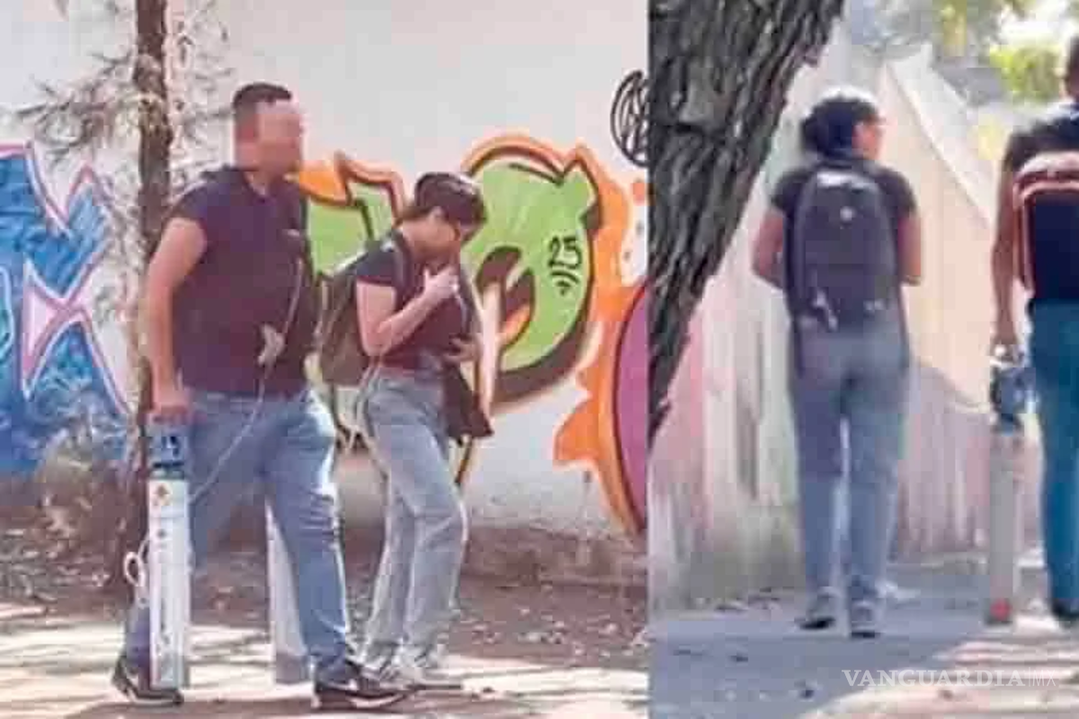 Un video que muestra a una pareja caminando por las calles de la Ciudad de México mientras cargan a sus…